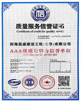质量服务信誉证书